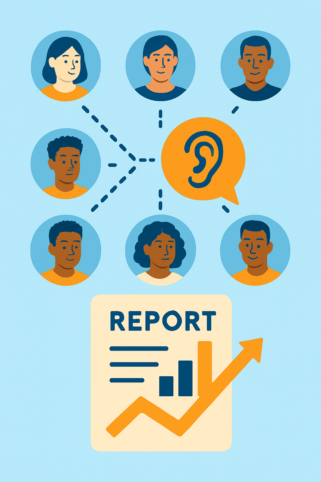 A Listening Tour is a structured, insight-driven process that uncovers the relational and cultural dynamics within your organization. Through thoughtful, confidential conversations, we surface how people experience leadership, collaboration, and other key areas - providing an honest picture of what’s working and what’s getting in the way.